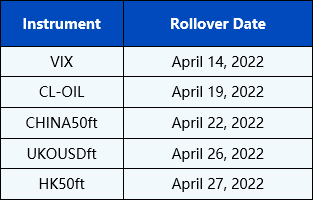 Please be advised that the following CFD instruments will be automatically rolled over as per the dates in the table below. As there can be a pricing difference between old and new futures contracts, we recommend clients to monitor their positions closely and manage positions accordingly.