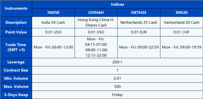 Please note that the above data are subject to changes. Please refer to MT4/MT5 for details.